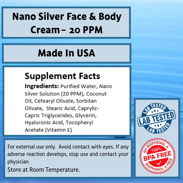 If traditional lotions feel too heavy or greasy, this cream brings a refreshing alternative. Built with SilverSol™ nanotechnology, it delivers 20 ppm of pure nano-silver in a stable, absorbable form that supports skin’s natural moisture and bacterial balance. Enhanced by hyaluronic acid, coconut oil, and vitamin E, it provides deep hydration, skin-softening benefits, and a soothing skin barrier—all in a fragrance-free and non-staining cream suitable for face and body use.
